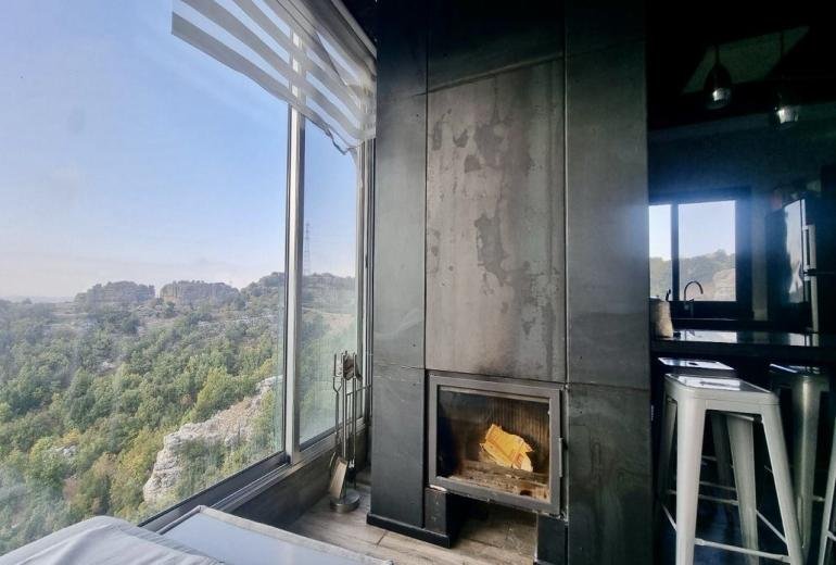‎تضم غرفة نوم، غرفة معيشة، مطبخ صغير، شرفة، نظام تدفئة (تشوفاج)، مدفأة، بالإضافة إلى موقف سيارات ومساحة على السطح لتركيب الطاقة الشمسية. ‎تفاصيل العقار: